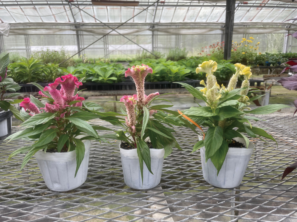 セロシア ホットトピック(左:ピンク 中:リーフ 右:イエロー)