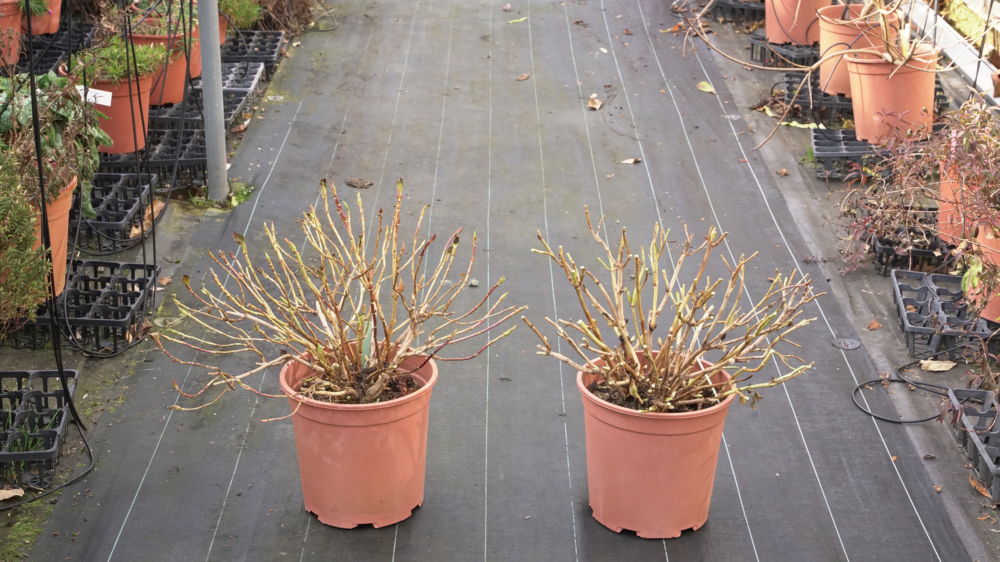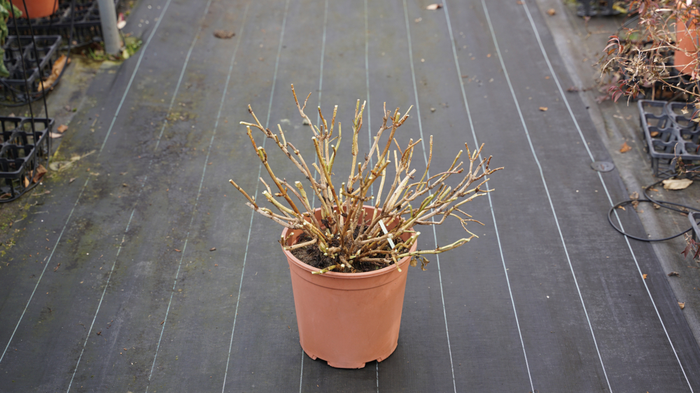 アジサイ サマーメドレー ペールシャボン(12月下旬 左:無剪定 右:全体に剪定)