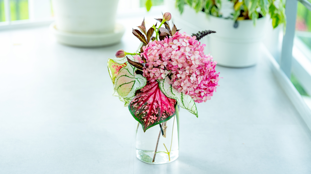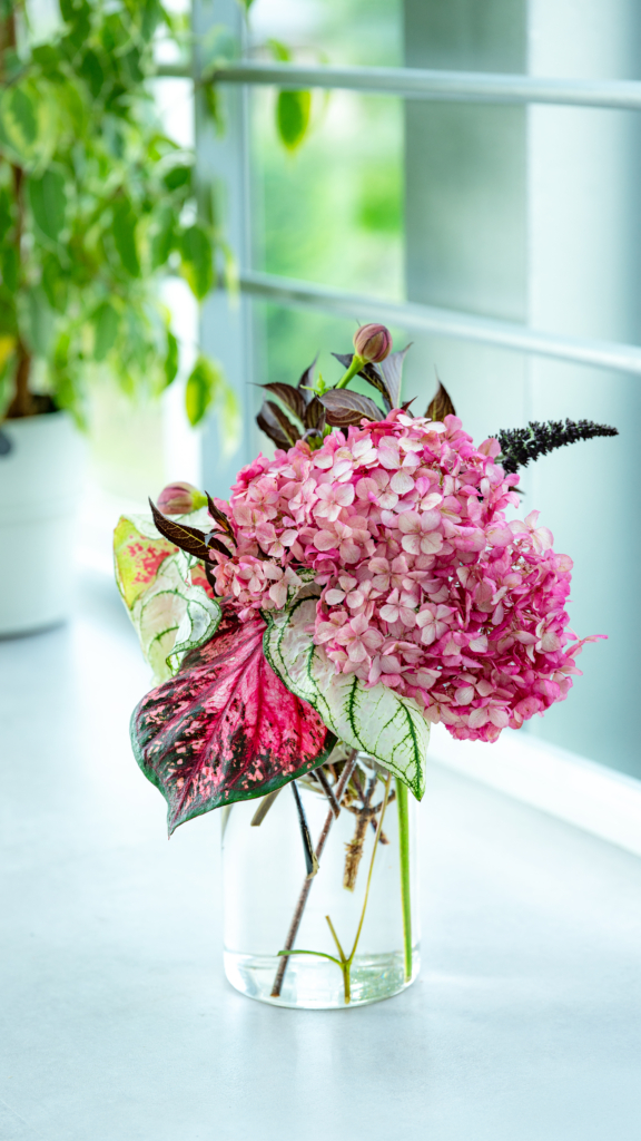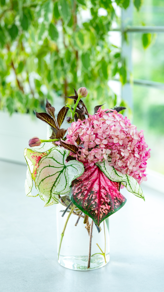 アナベル ミニ ルビー&ガーデンカラジウム ハートトゥハート